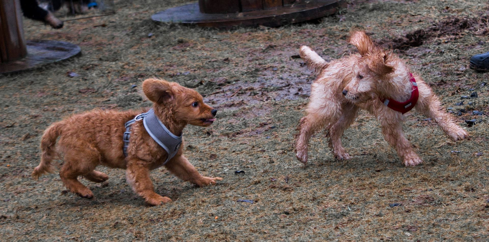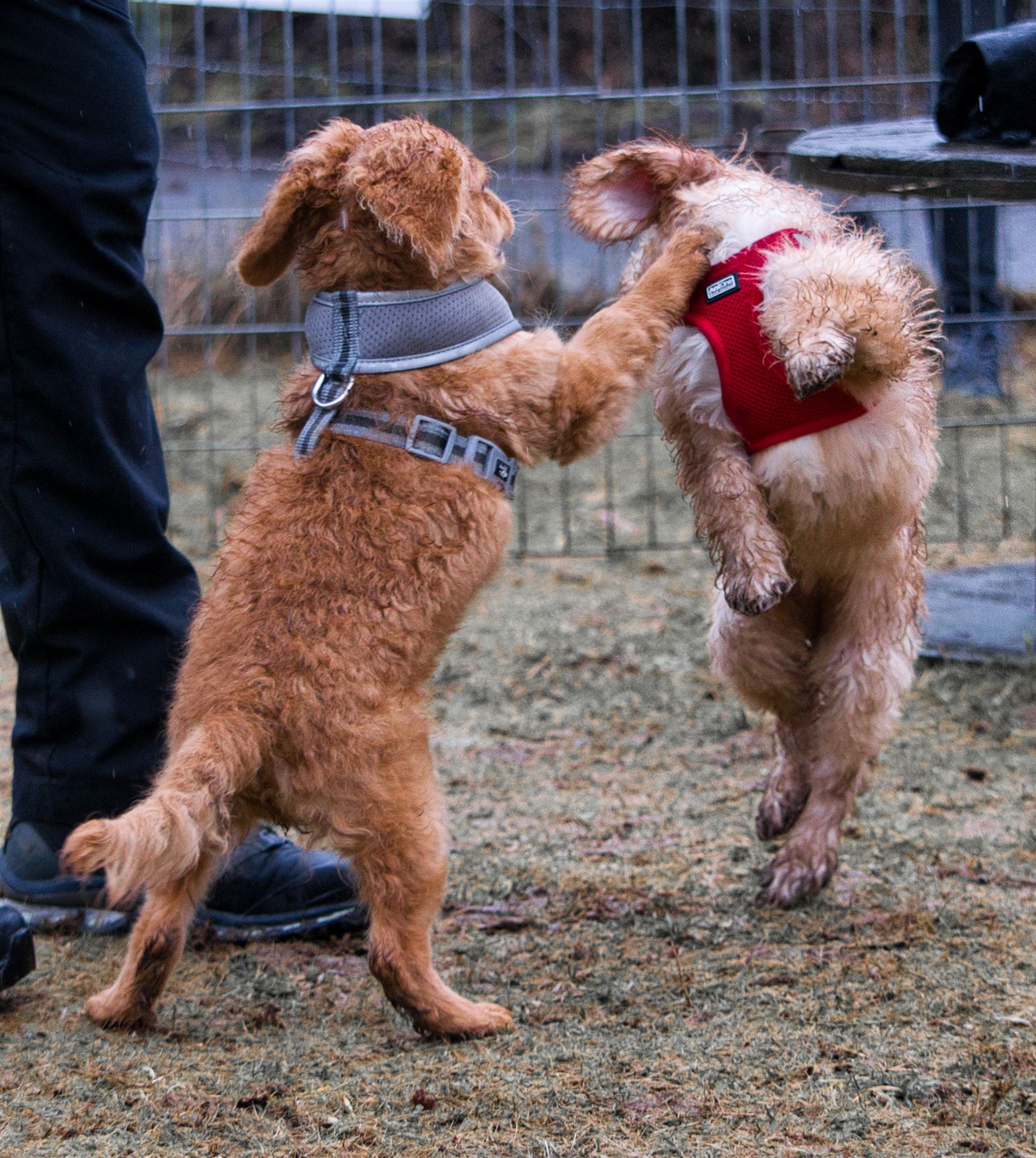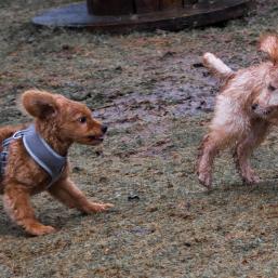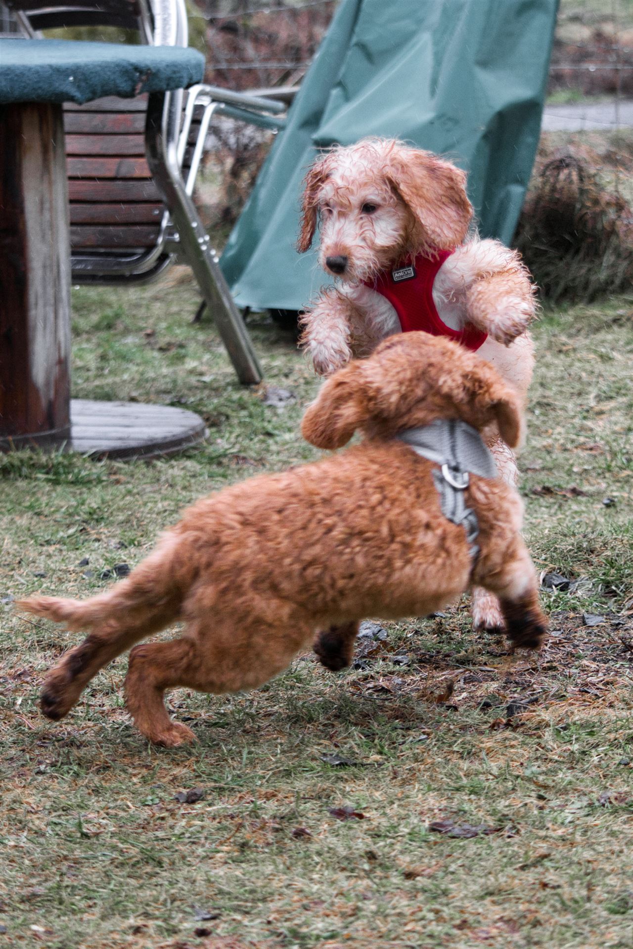 Eben laufen sie Seite an Seite und wenige Sekunden später tollen sie und messen ihre Kräfte im Spiel.