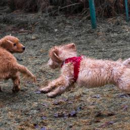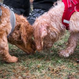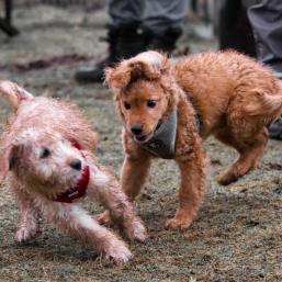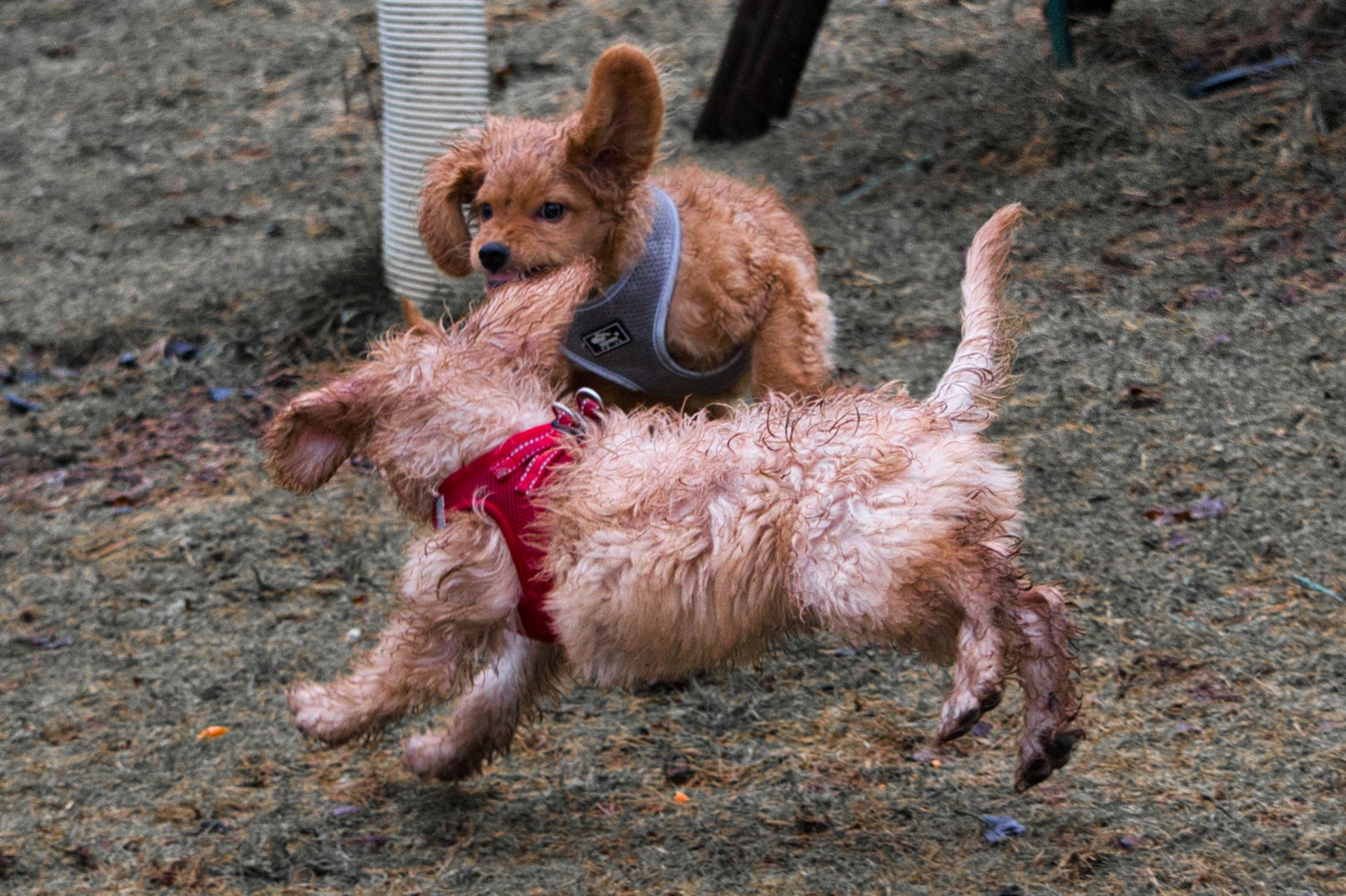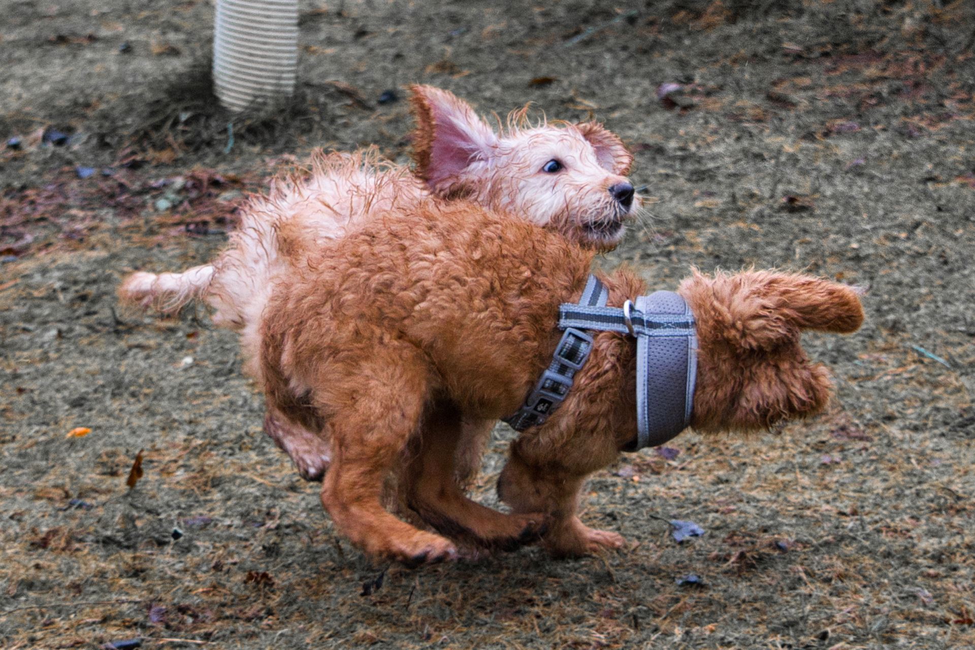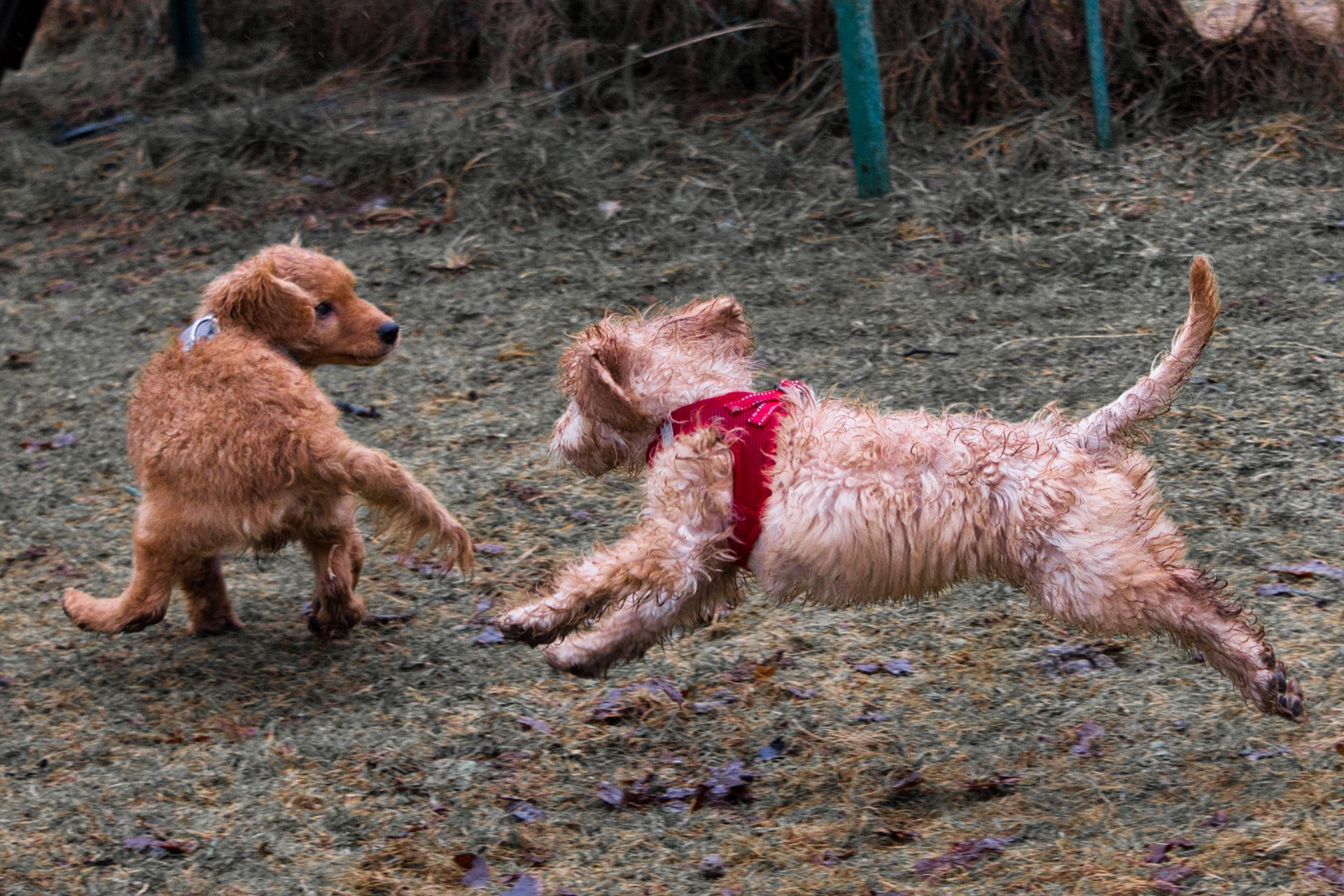 Eben laufen sie Seite an Seite und wenige Sekunden später tollen sie und messen ihre Kräfte im Spiel.