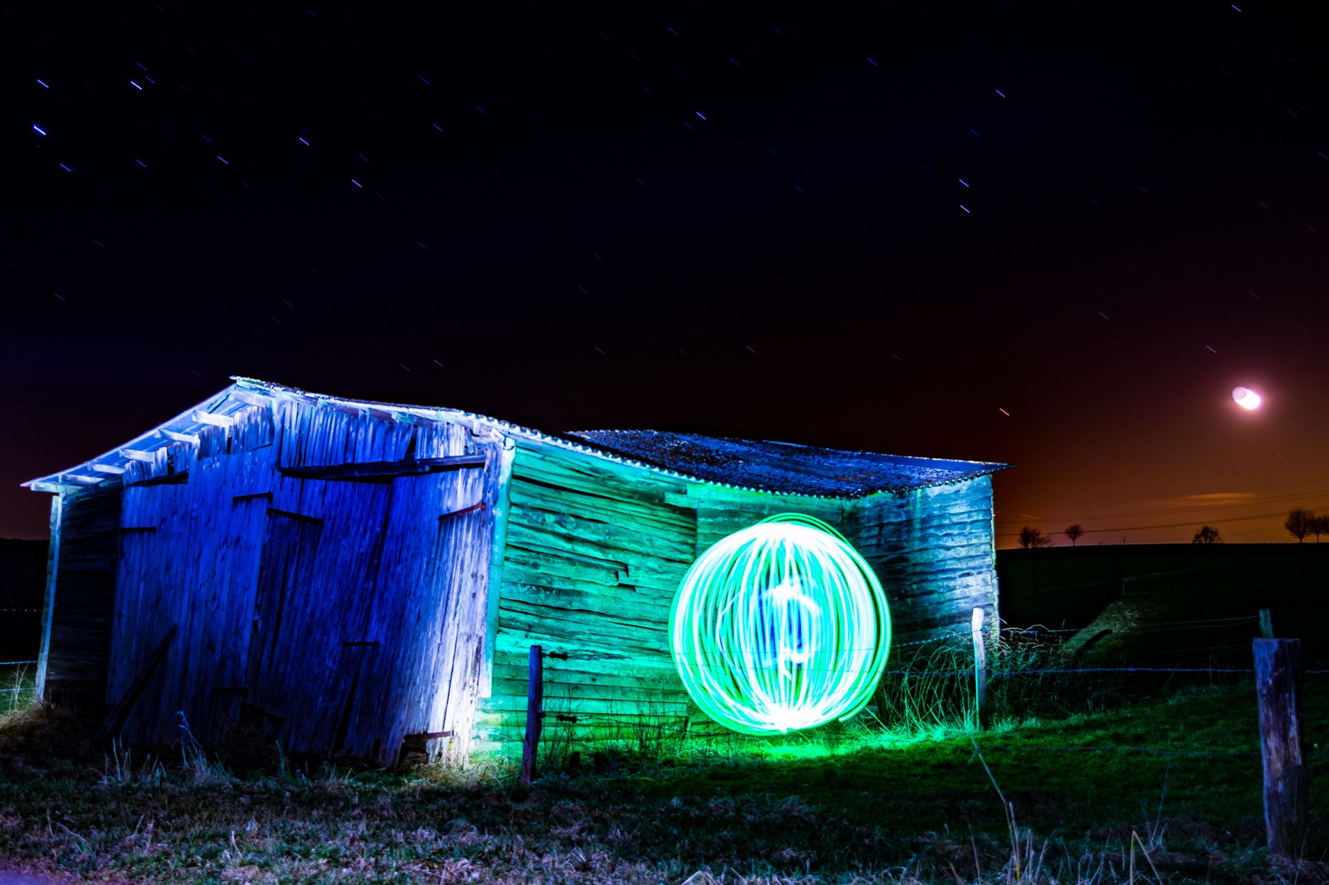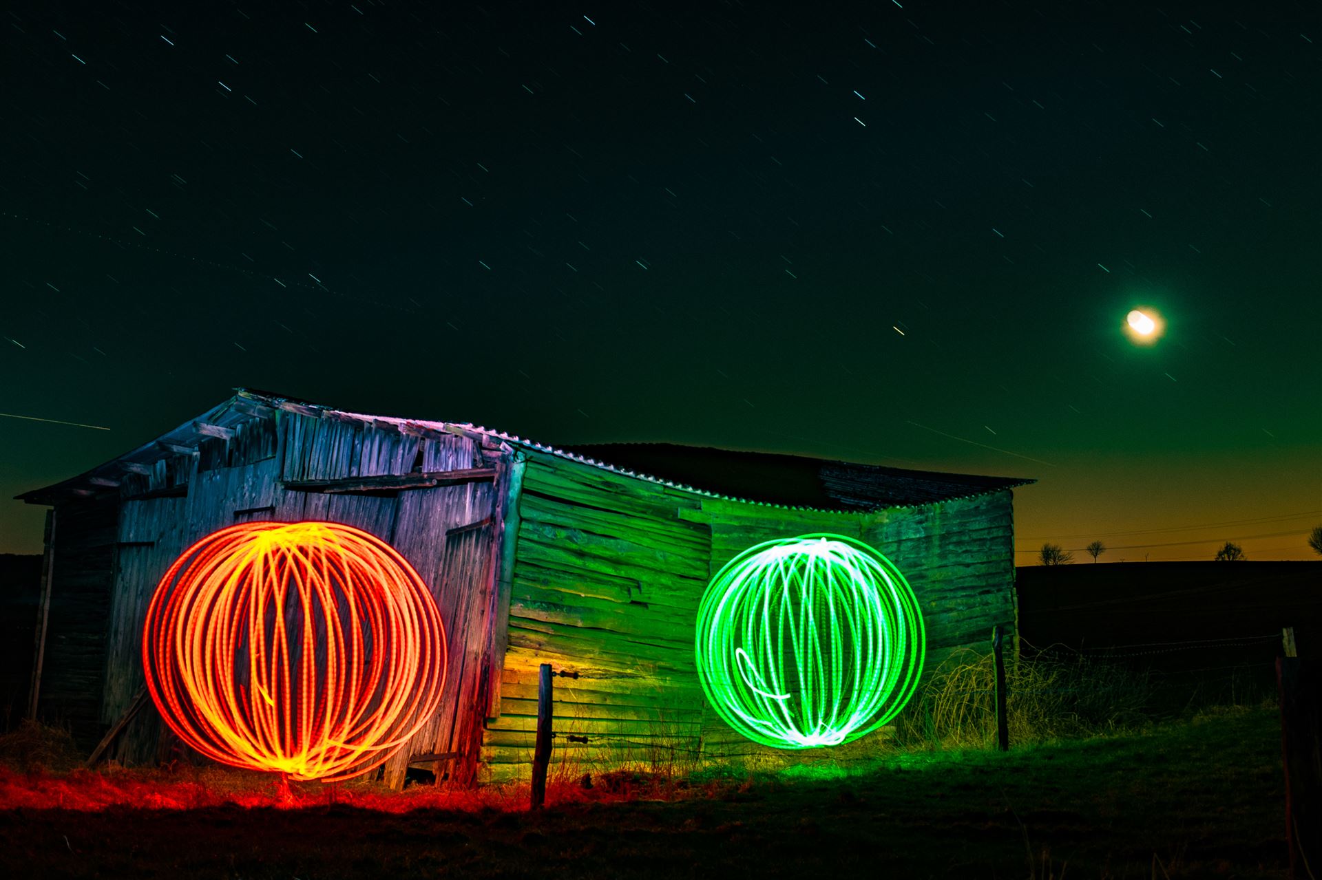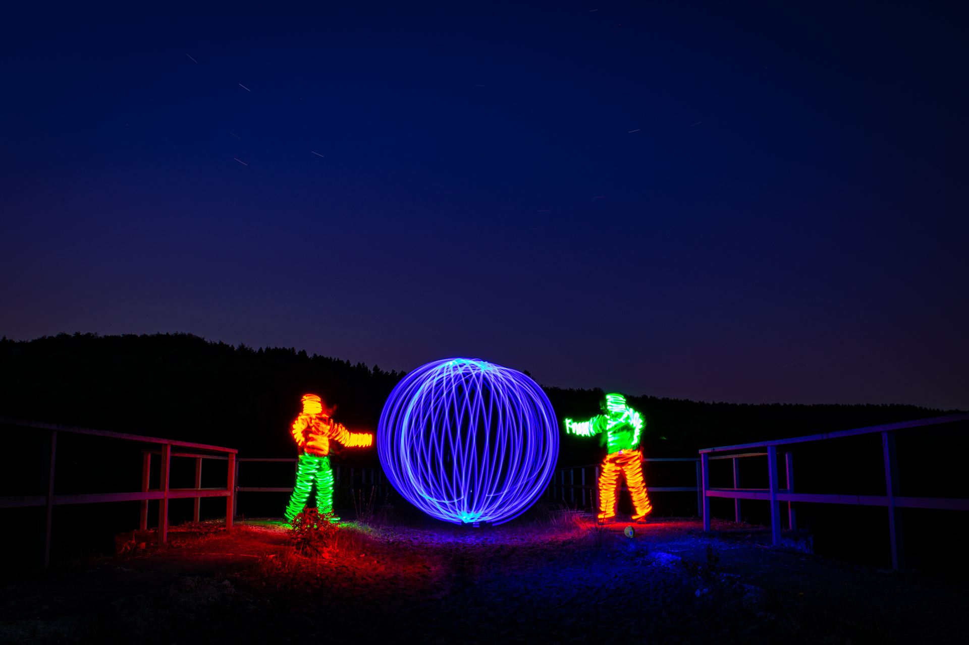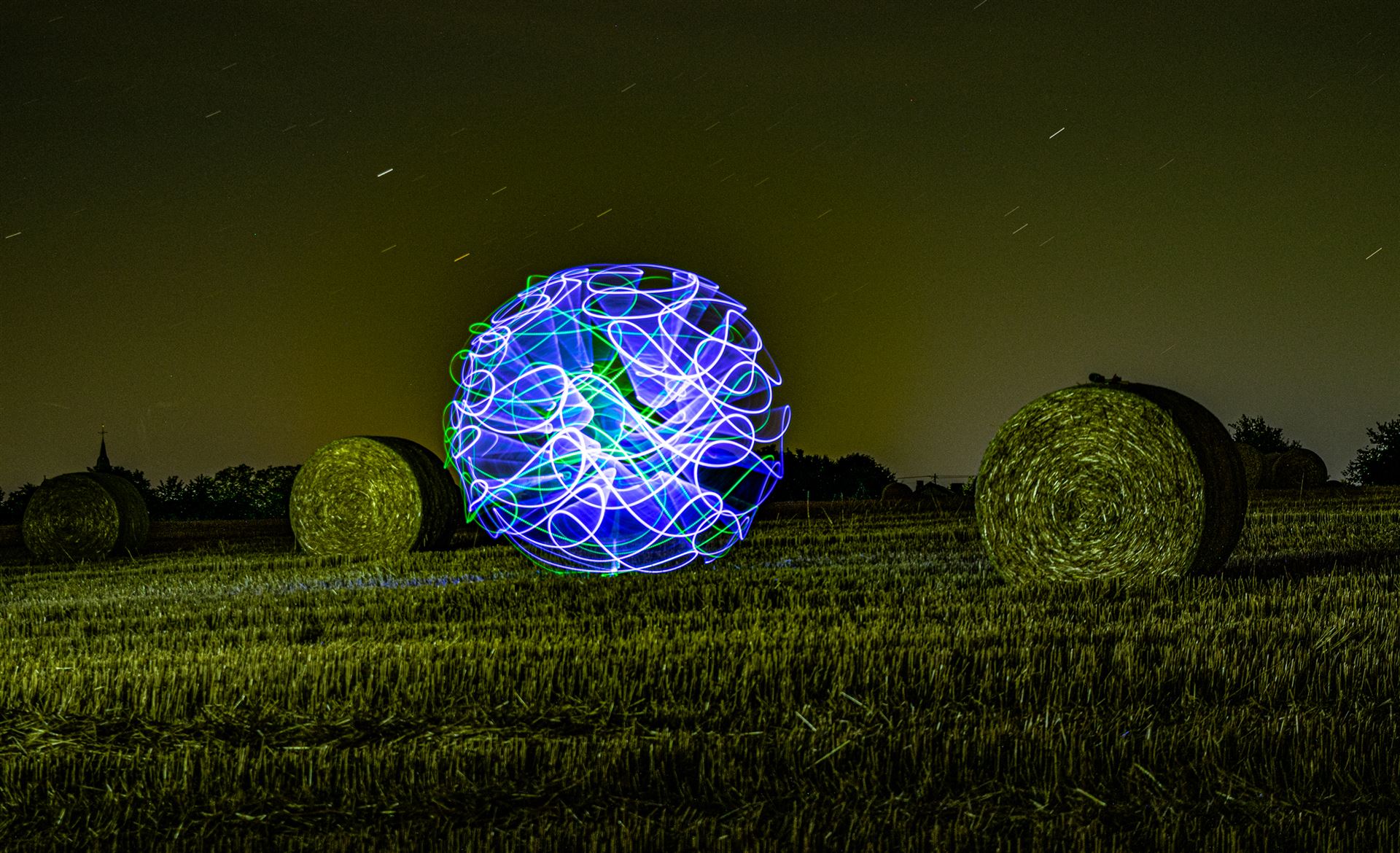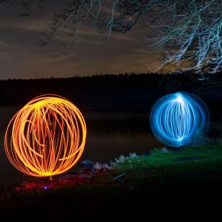 Diese Lichtkugel (Fachsprache unter LightPaintern: ORB) lässt sich durch spezielle Tools und Materialien erstellen.