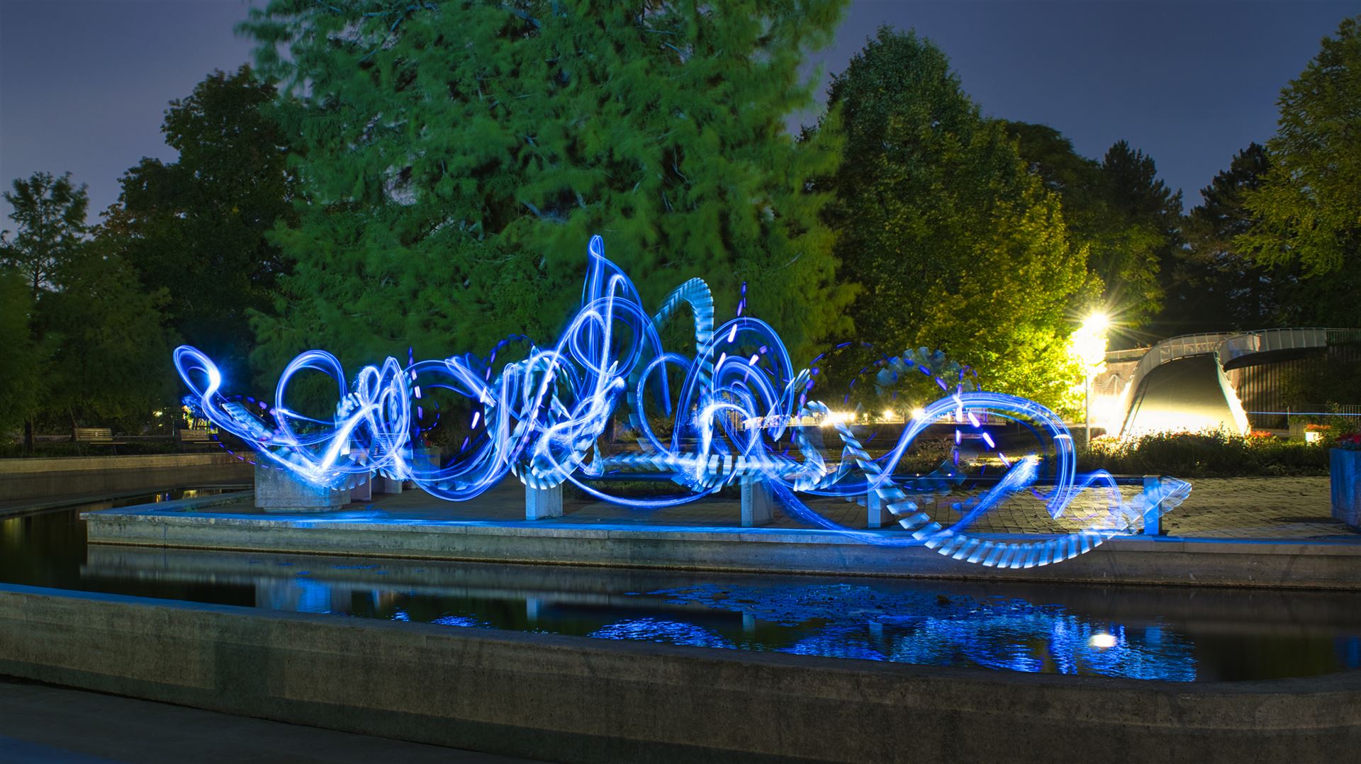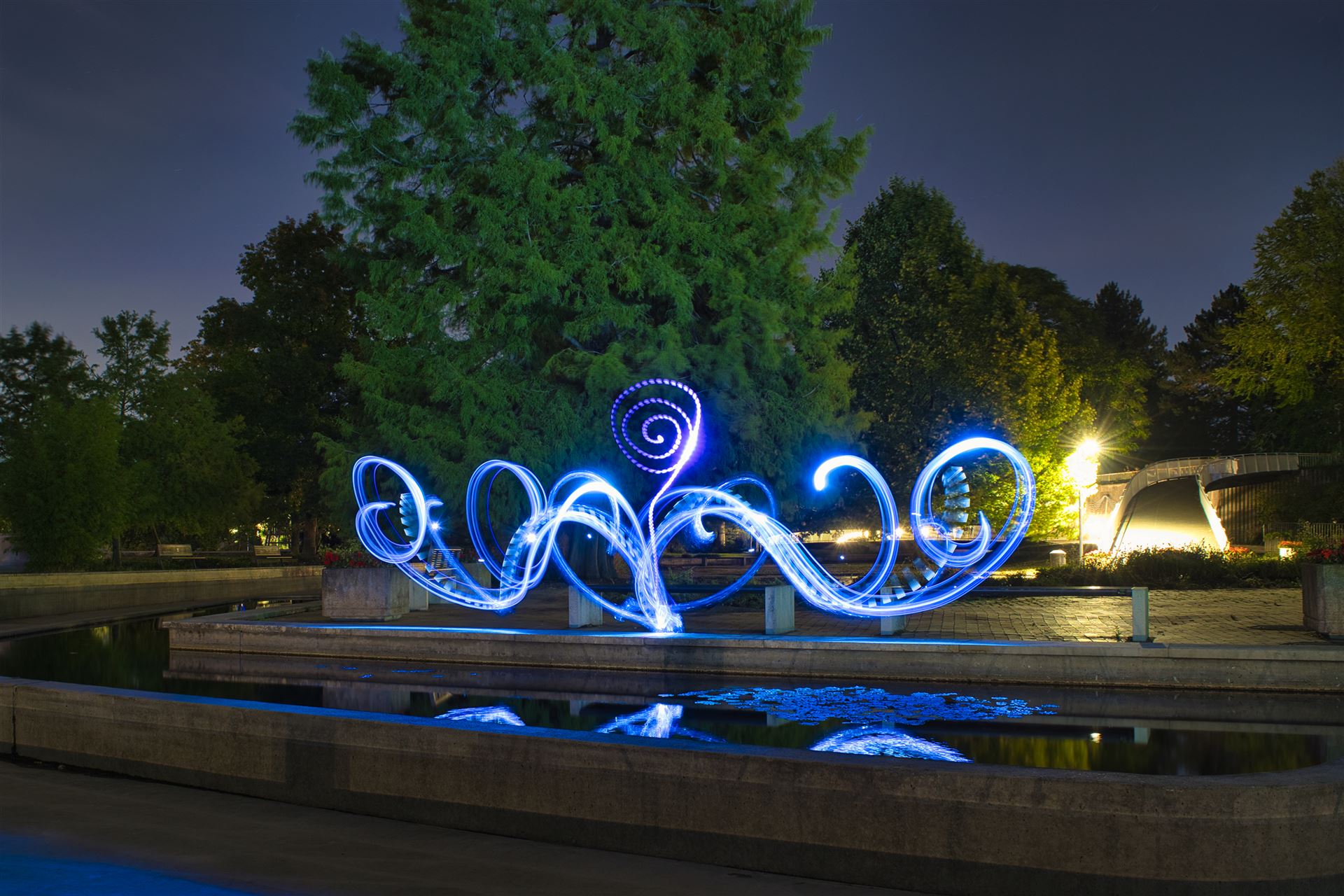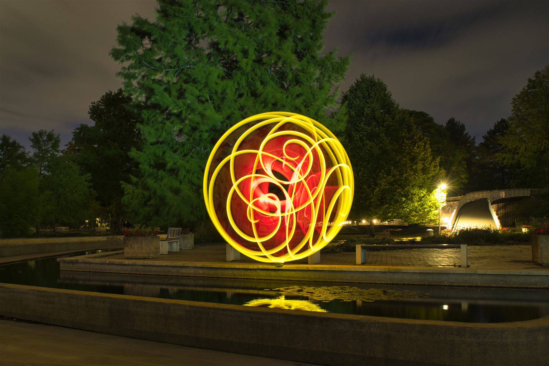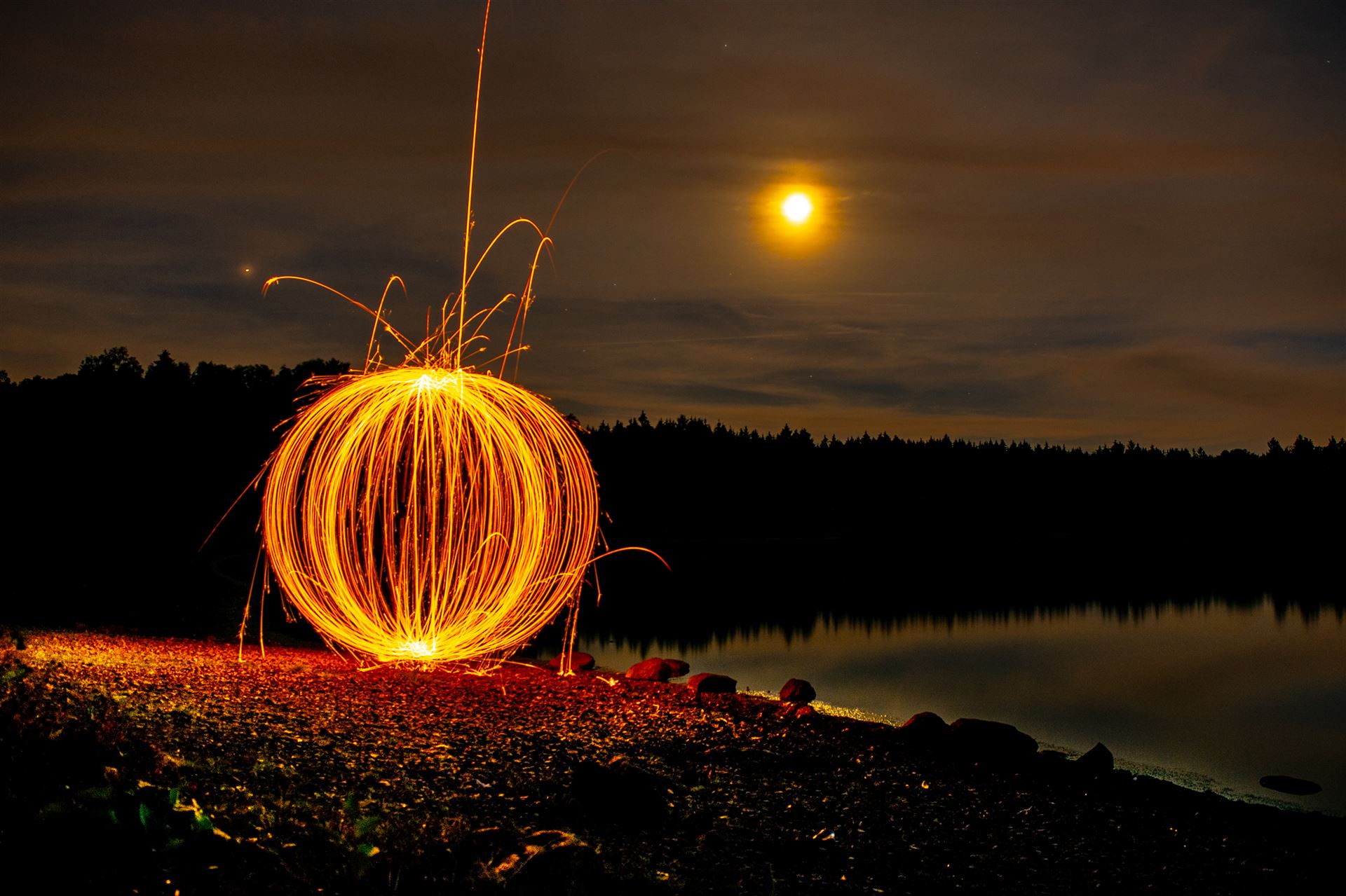 Diese Lichtkugel (Fachsprache unter LightPaintern: ORB) lässt sich durch spezielle Tools und Materialien erstellen.